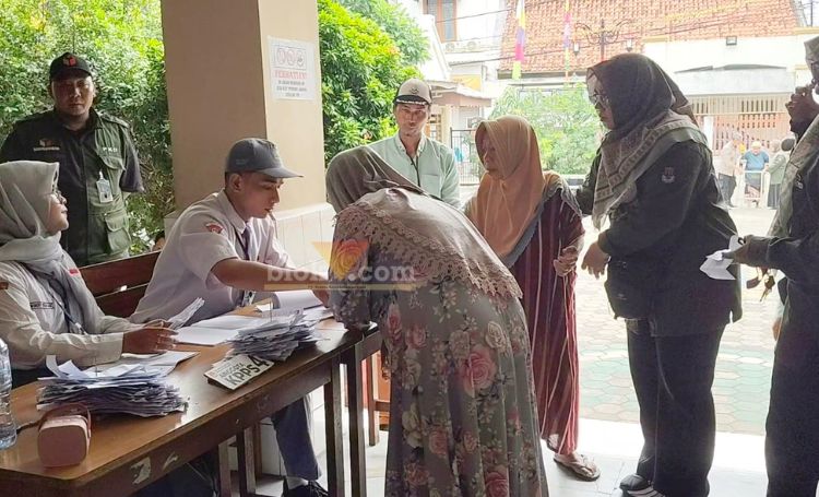 Panitia di TPS yang berlokasi di gedung TK-SD Setia Budi, Jalan Dr. Setia Budi, ini mengenakan seragam sekolah dan guru pada hari pencoblosan, Rabu (27/11/2024).